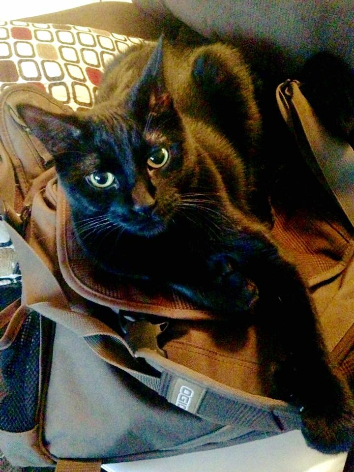 “Kepa was born on August 20th, 2013, and adopted on December 14th, 2013. Since then, he has been the purrfect little edition to his mom and dad’s lives. A polydactyl black cat by trade, Kepa uses his ‘mittens’ to open cupboards and doors (which scares his humans into thinking a ghost lives with them), but he’s also a super sweet, lovable boy who loves to play with his sister, Stella, cuddle with us, and play fetch. Other favorite past times include tucking himself into beds, staring at birds, and playing soccer with his toys.”