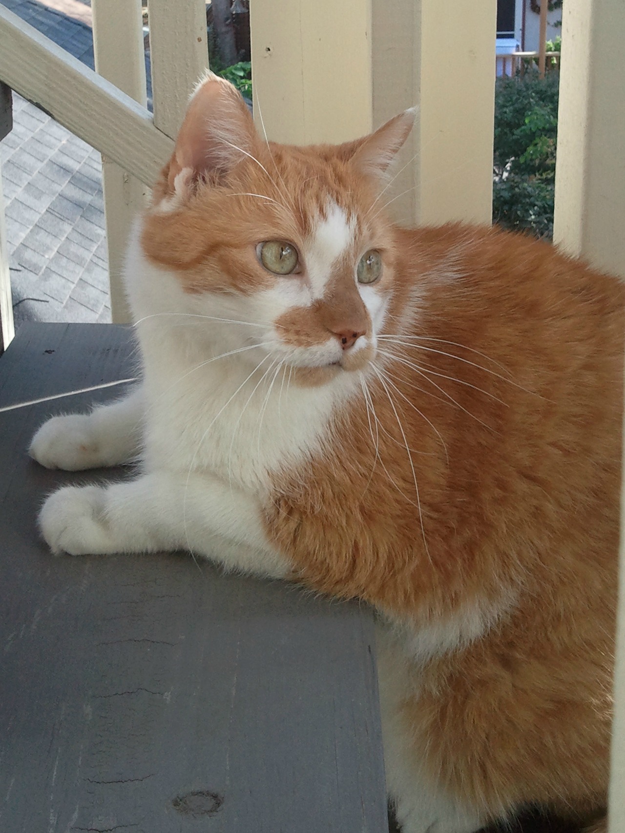 “Hi my name is Murphy. I am 15 years old. The doctor says I am in great shape for my age. I enjoy snuggling with my little brother, playing with my catnip toys, and licking things made of plastic. I love to meow and make sure my voice is heard. I also enjoy relaxing in a warm sunbeam.”